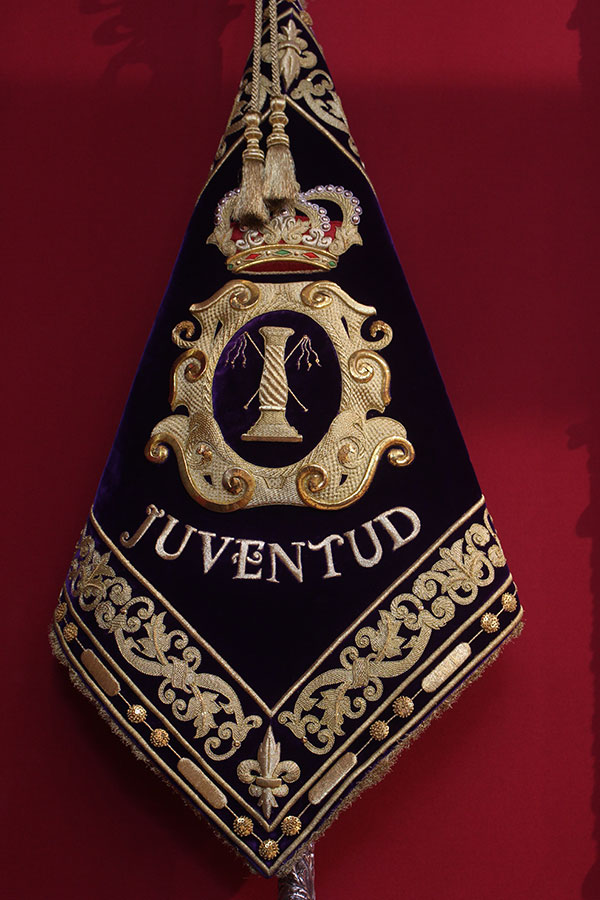 Como última insignia en la cofradía se sitúa el Pendón Morado de Castilla, el cual procesiona escoltado por dos servidores contrajes de "librea" negros o morados.