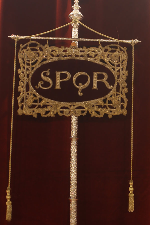 Segundo tramo de la cofradía, compuesto por la insignia del Senatus Populusque Romanus, acompañado por cuatro varas y que precede a dos filas de nazarenos, que son acompañados por un Diputado de tramo.