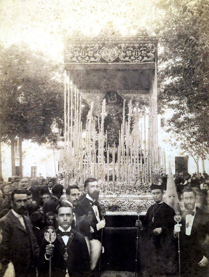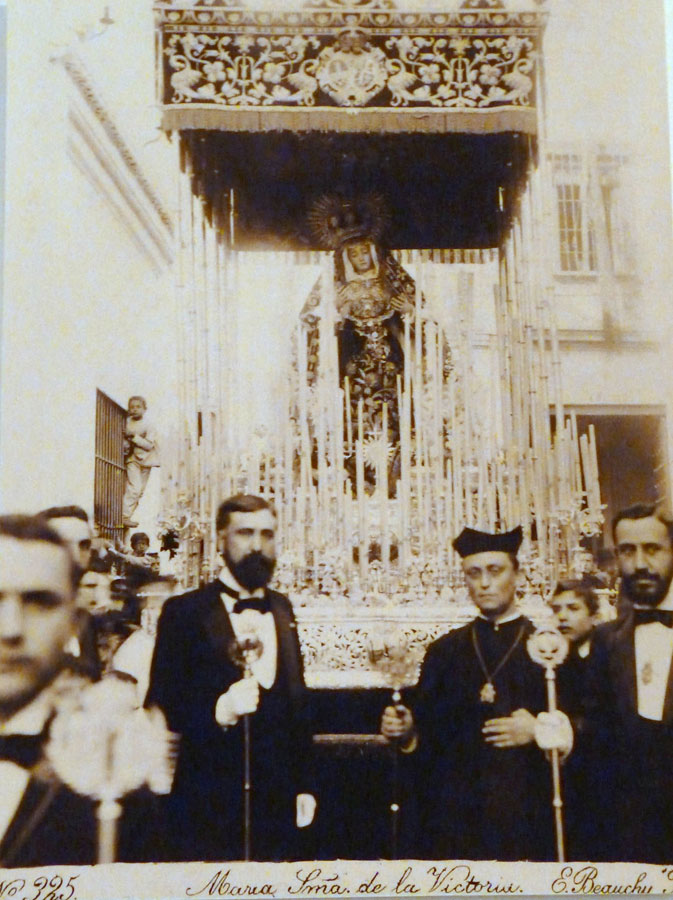 Fray Jerónimo de CórdobaCliché de Emilio Beauchy del paso de palio de María Santísima de la Victoria, hacia 1897-1900. Presiden el mismo el escolapio Fray Jerónimo de Córdoba, gran devoto de la Virgen. D. Ildefonso Marañón y Lavín, Teniente de Hermano Mayor, y su hermano Juan Marañón y Lavín, Consiliario.