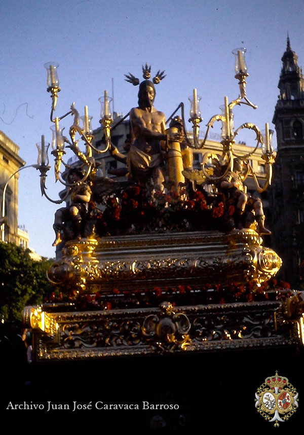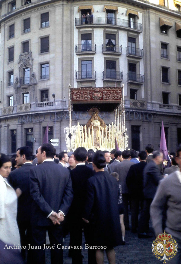 Gracias al archivo fotográfico de diapositivas de D. Juan José Caravaca Barroso, que nos llega a través de su hijo D. Juan Jose Caravaca Silva, podemos comtemplar el discurrir de los pasos de nuestros Sagrados Titulares en la tarde del 23 de marzo de 1967 por la Plaza Nueva, a la altura del Excmo. Ayuntamiento de Sevilla.