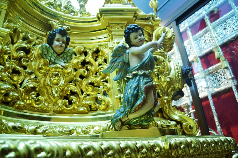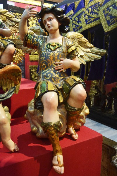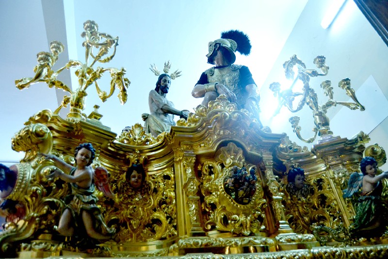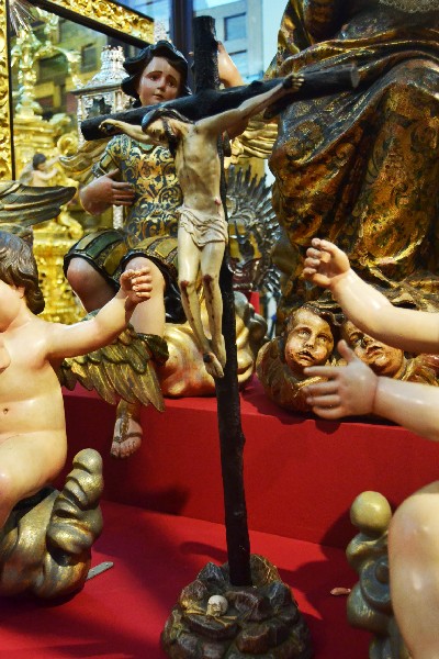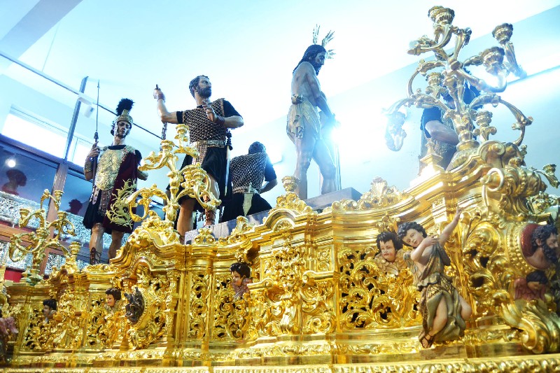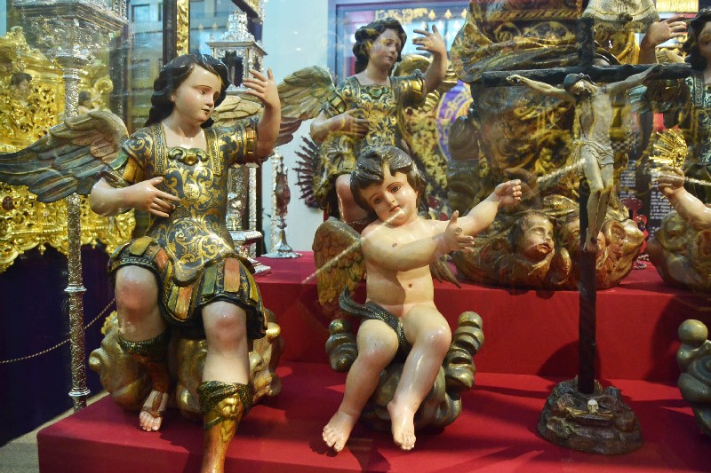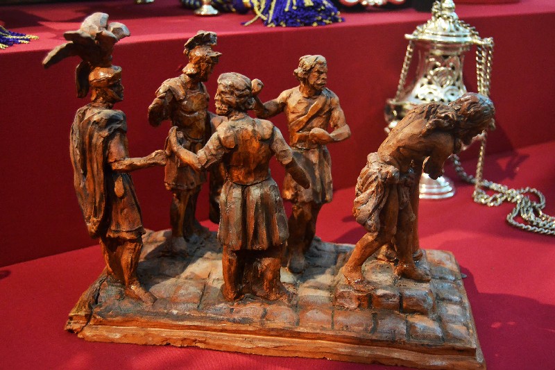 Del mismo modo, la sala acoge un grupo de esculturas entre las que destacan el Cristo Atado a la Columna que realizó Amaro Vázquez en 1602 y que fue imagen titular de la Hermandad durante mas de tres siglos, así como la serie de cuatro ángeles pasionarios que ejecutara Pedro Roldán en 1666 para el antiguo paso del Santo Cristo de la Púrpura, y el conjunto realizado por José Antonio Navarro Arteaga entre 1996 y 2003 para el paso de misterio.