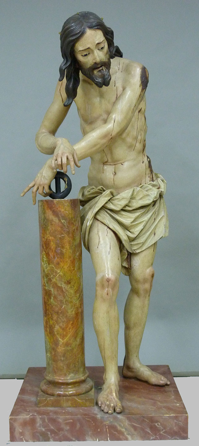 Fue restaurado en 1993 por Ricardo Comas. Su realismo es patente en la interpretación de las heridas y traumatismos producidos por la flagelación. Su piel, de atinada encarnadura, queda manchada de sangre a causa de los múltiples latigazos, insistiendo en la nota cruenta del martirio.